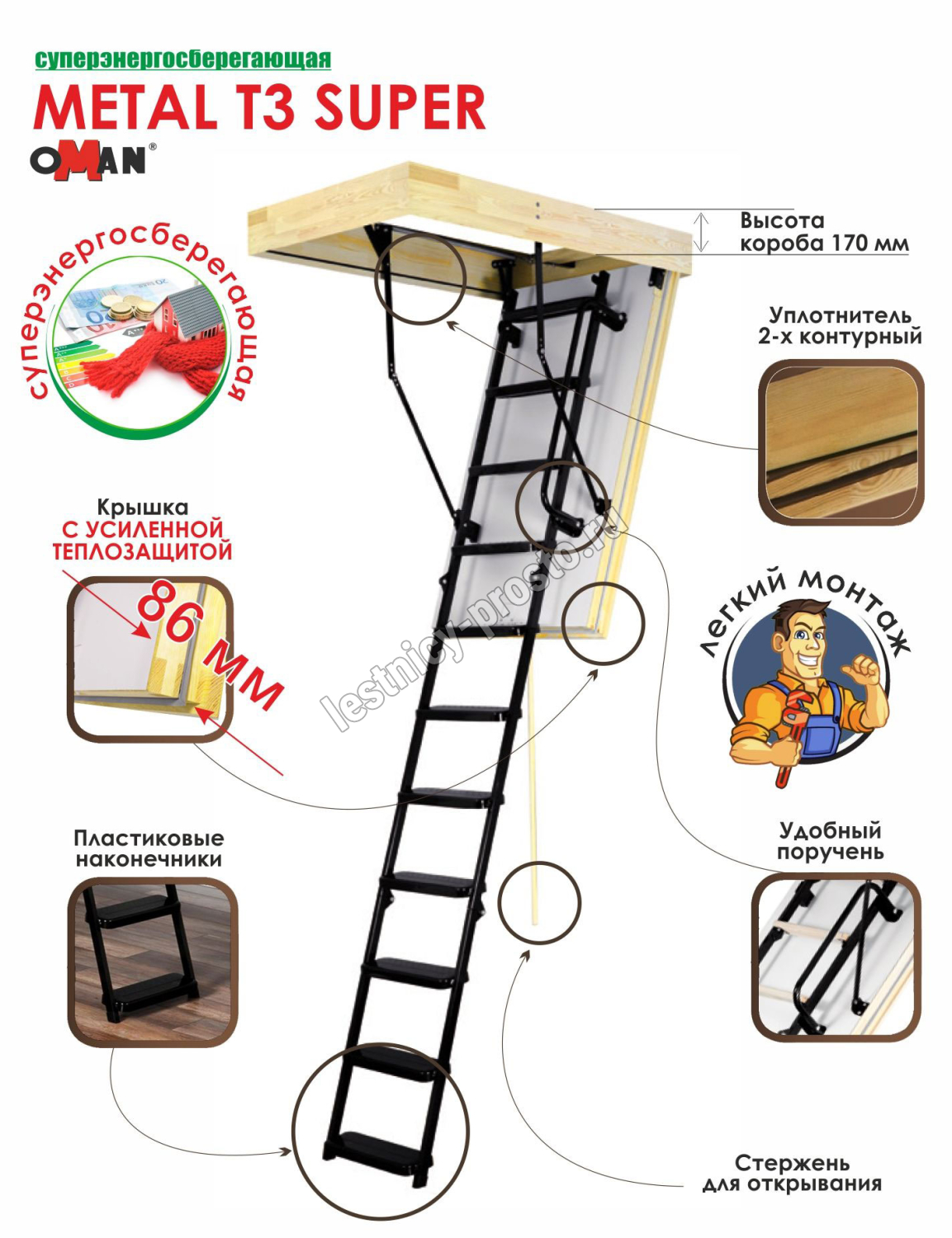 Чердачная лестница OMAN Metal T3 SUPER 60×120 см, h-280 см