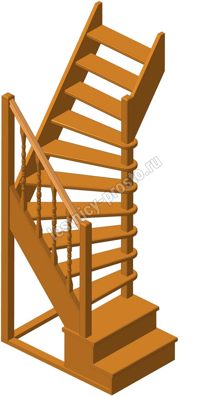 Деревянная межэтажная лестница ЛЕС-91 2700-2925 проем 1220-780, Бук