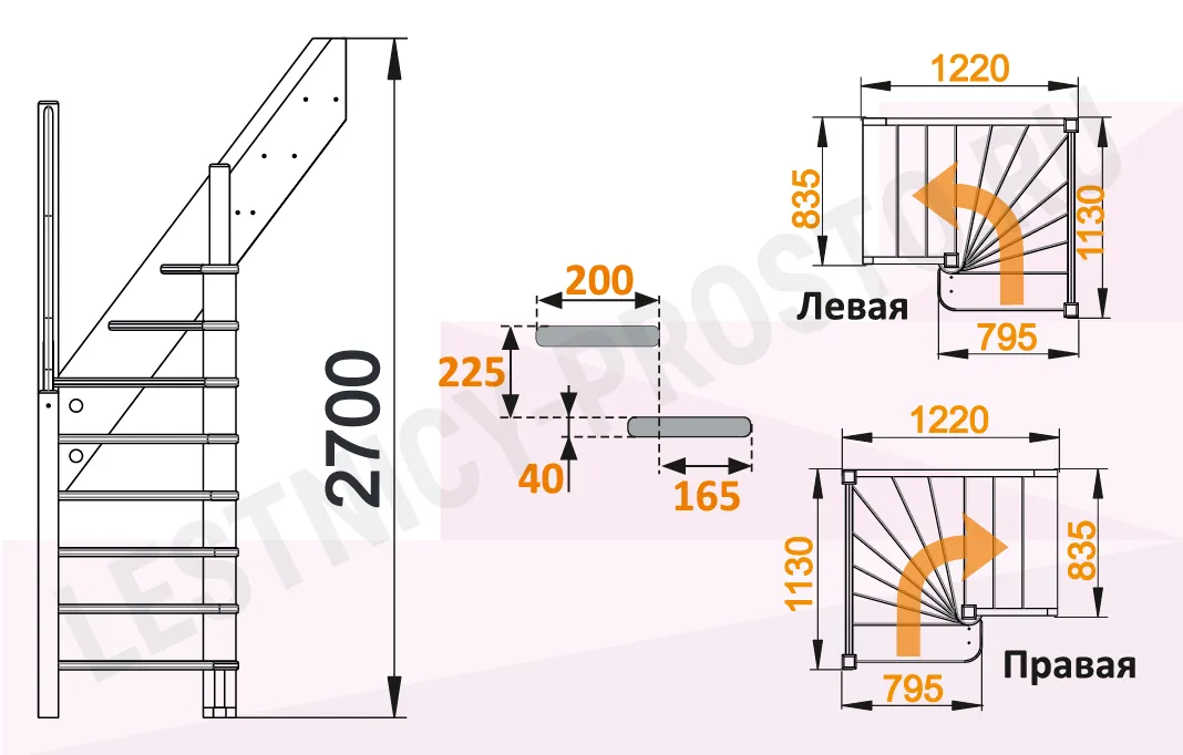 | Лестница из сосны под покраску ЛС-91М+1 ступень сверху |