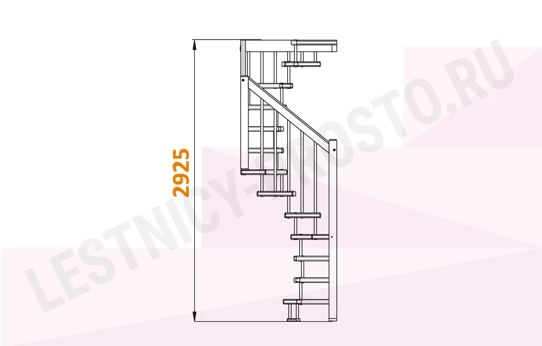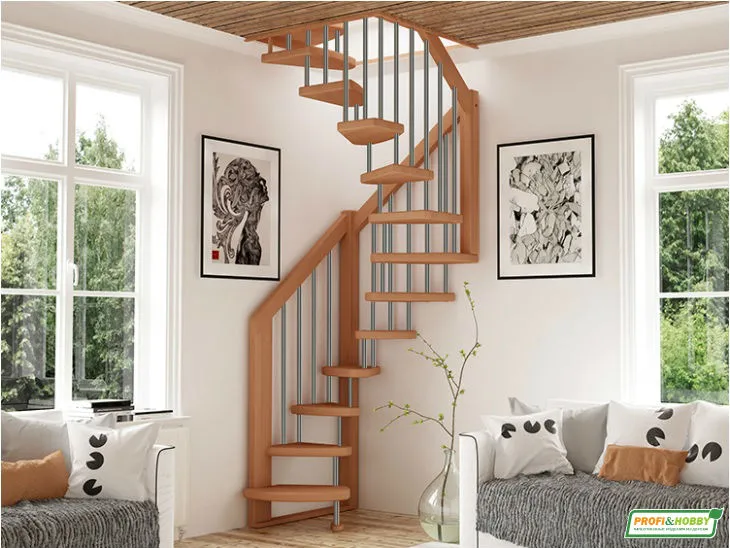 Базовый комплект включает в себя деревянные элементы лестницы и ограждения без какого-либо покрытия. Лестница сверхмалогабаритная