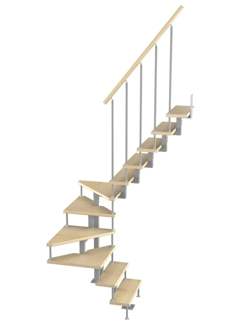 Базовый комплект включает в себя деревянные элементы лестницы с подступенками и ограждения без какого-либо покрытия.