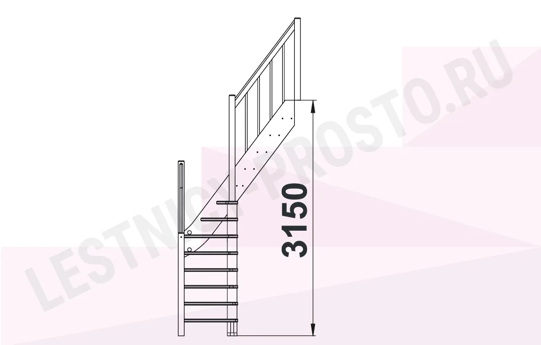 Базовый комплект включает в себя деревянные элементы лестницы и ограждения без какого-либо покрытия.