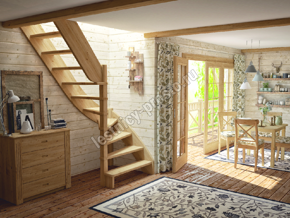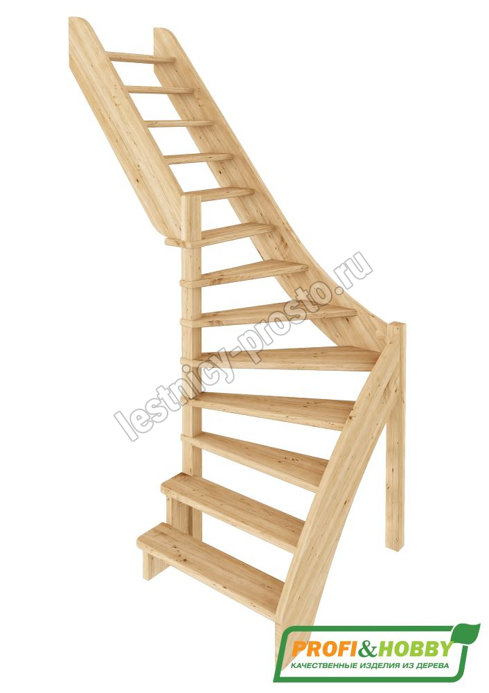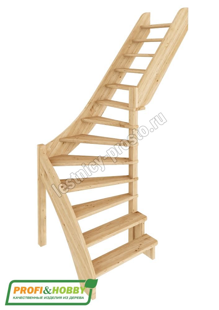 Базовый комплект включает в себя деревянные элементы лестницы без какого-либо покрытия.