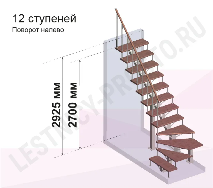 Лестница PROSTO MONO Г-образная h292.5 см, ступени лиственница