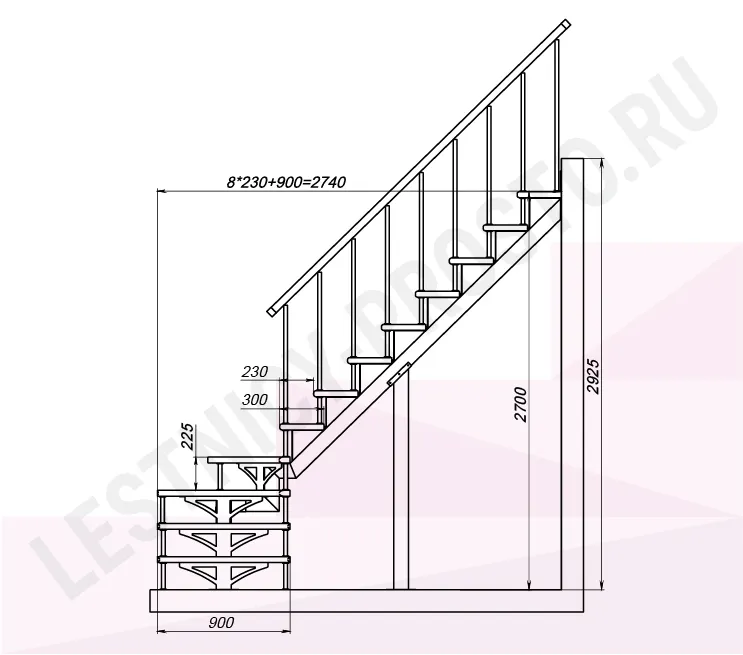 - таким образом вы получаете возможность увеличить общую высоту подъёма лестницы до необходимой.
