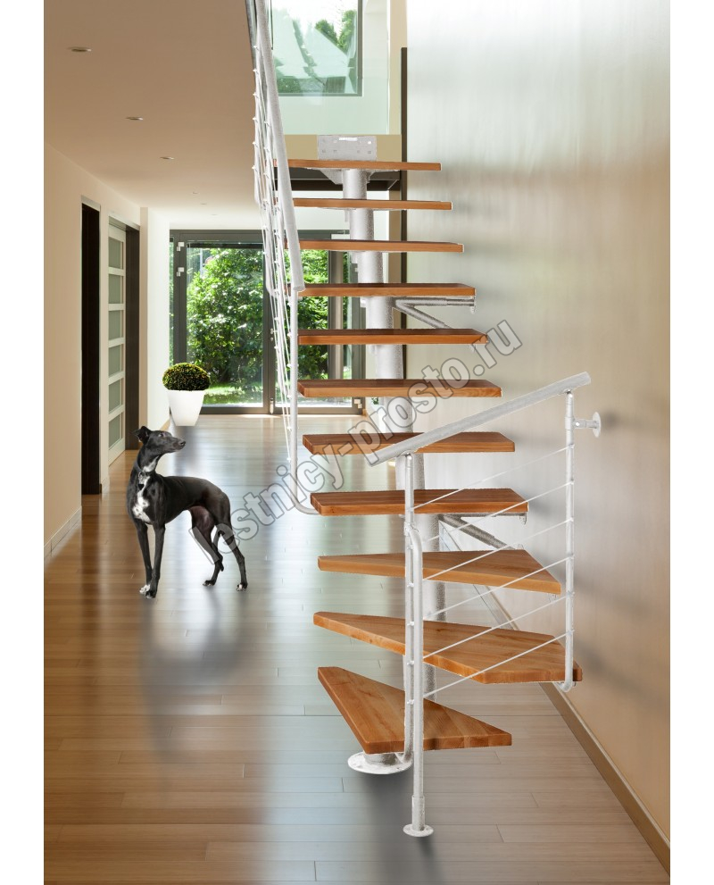 ATRIUM DIXI PLUS - это современная и удобная лестница, занимающая сравнительно мало места. В набор входят 11 конструктивных элементов и 11 ступеней из массивного лакированного дерева (8 прямых ступеней и 3 поворотные ступени). Есть возможность регулировать высоту ступеней. В комплект входят перила с вертикальными стойками и горизонтальными перегородками.