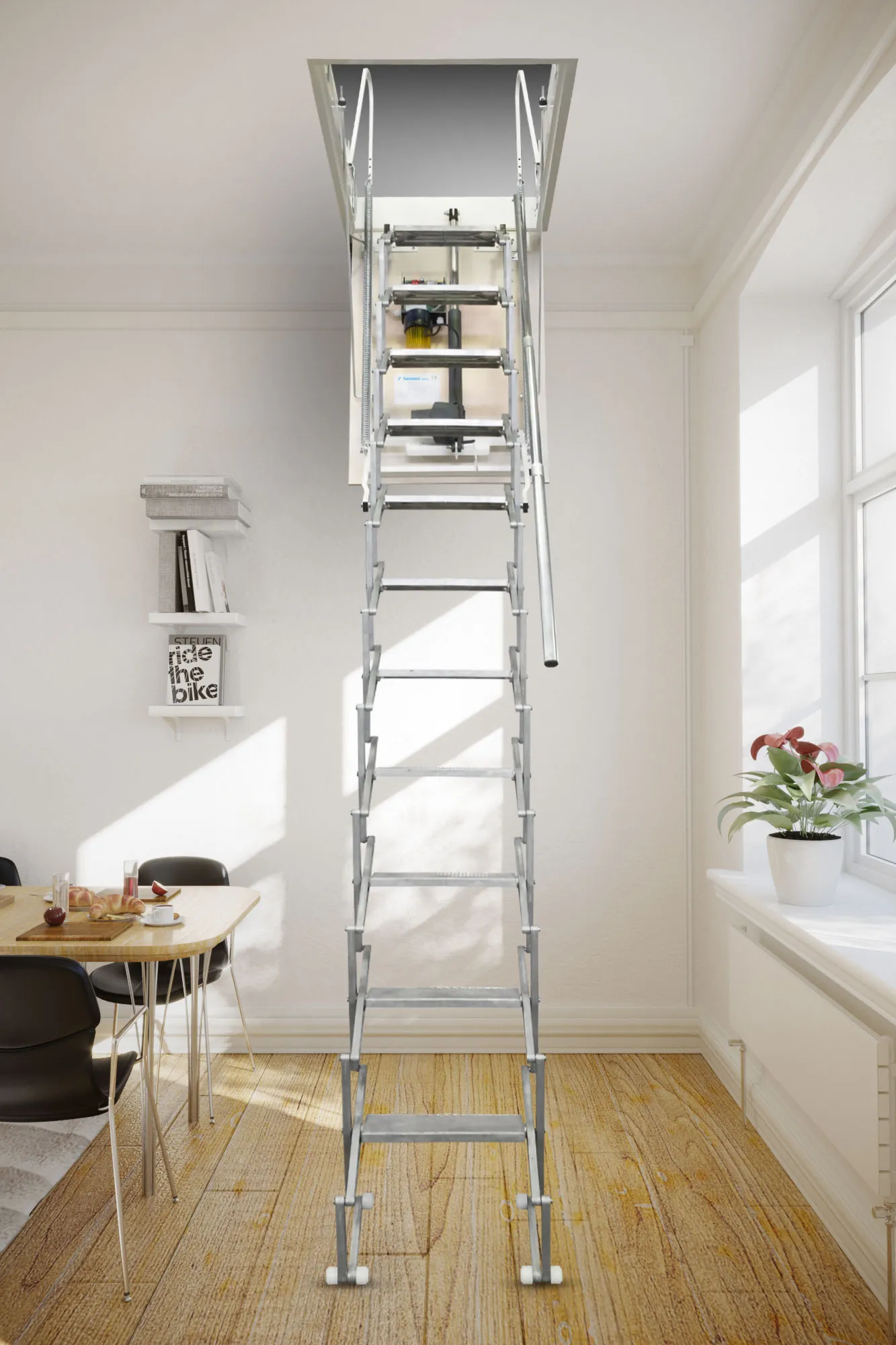 Универсальная, модульная лестница позволяет регулировать высоту шага в диапазоне 200 - 240 мм.