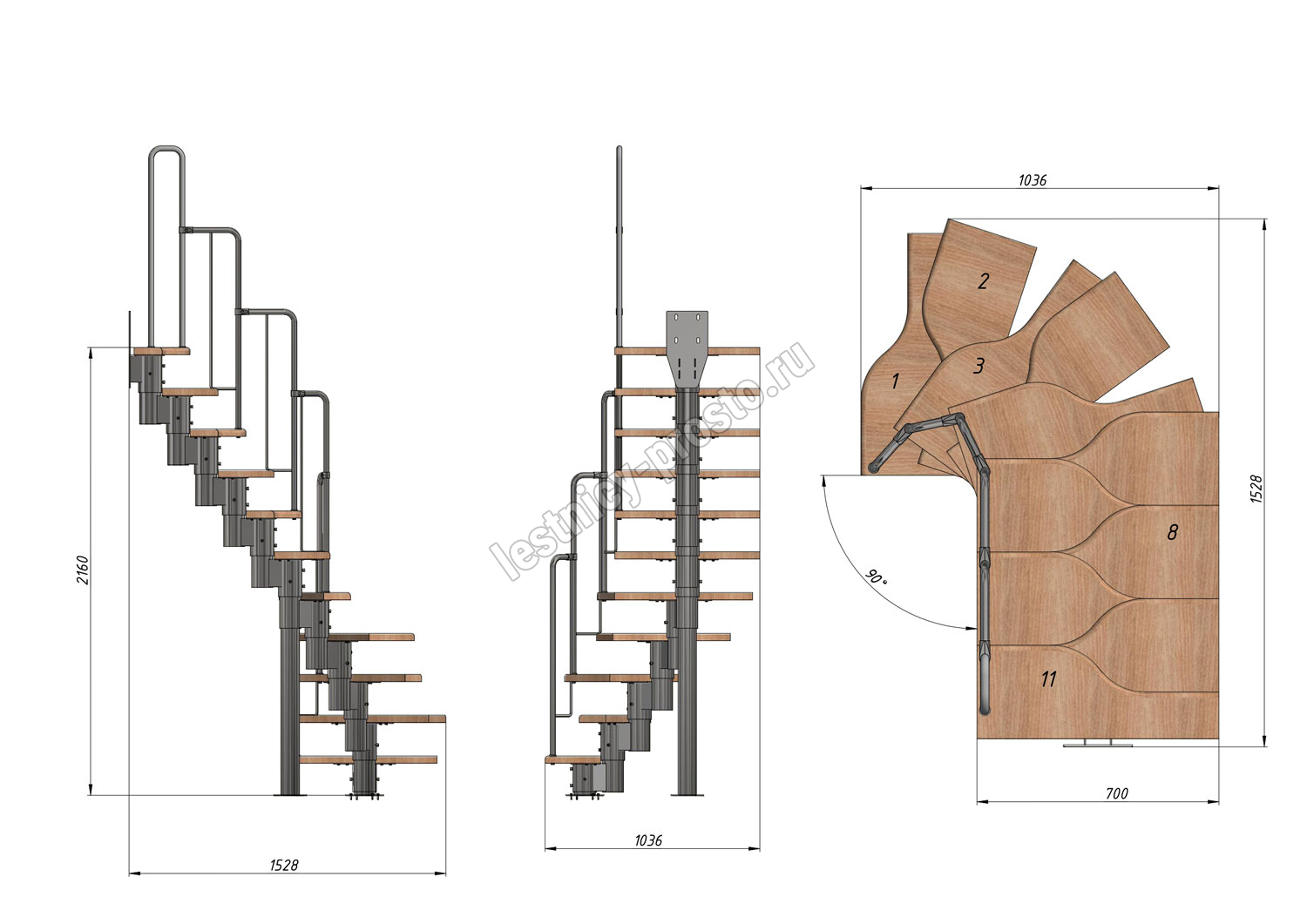 Высота лестницы 1980 - 2880 (11 ступеней) мм