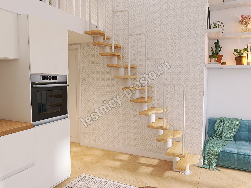 Лестница Prosto Urban White гусиный шаг 700 мм, h180-264 см (10 ступеней), ясень