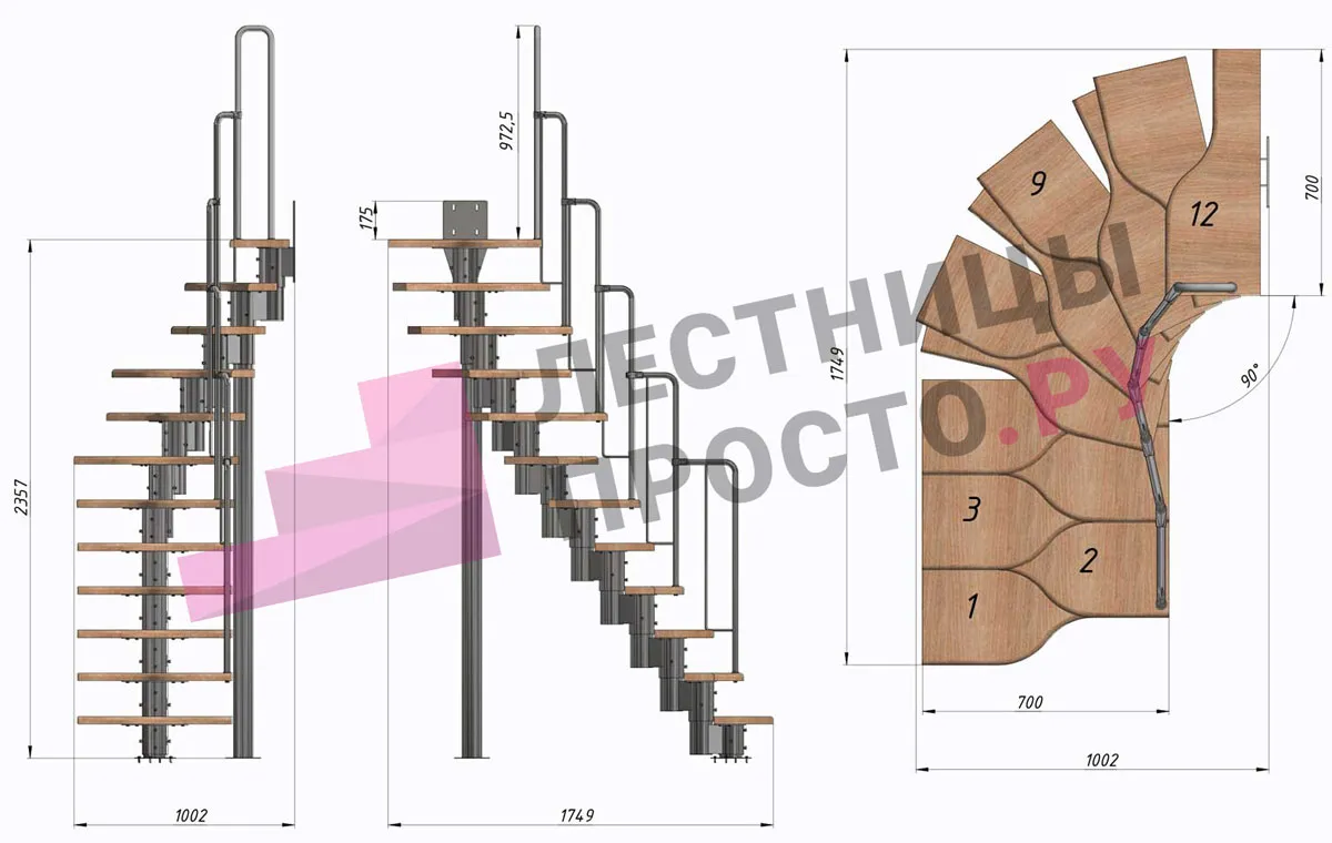 соответствует картинке, но вы не ограничены в его выборе. Лестницу можно приобрести и без ограждения, и с любым другим. Устанавливать на такую лестницу можно почти всё, начиная от классических деревянных балясин и заканчивая эксклюзивными коваными изделиями.