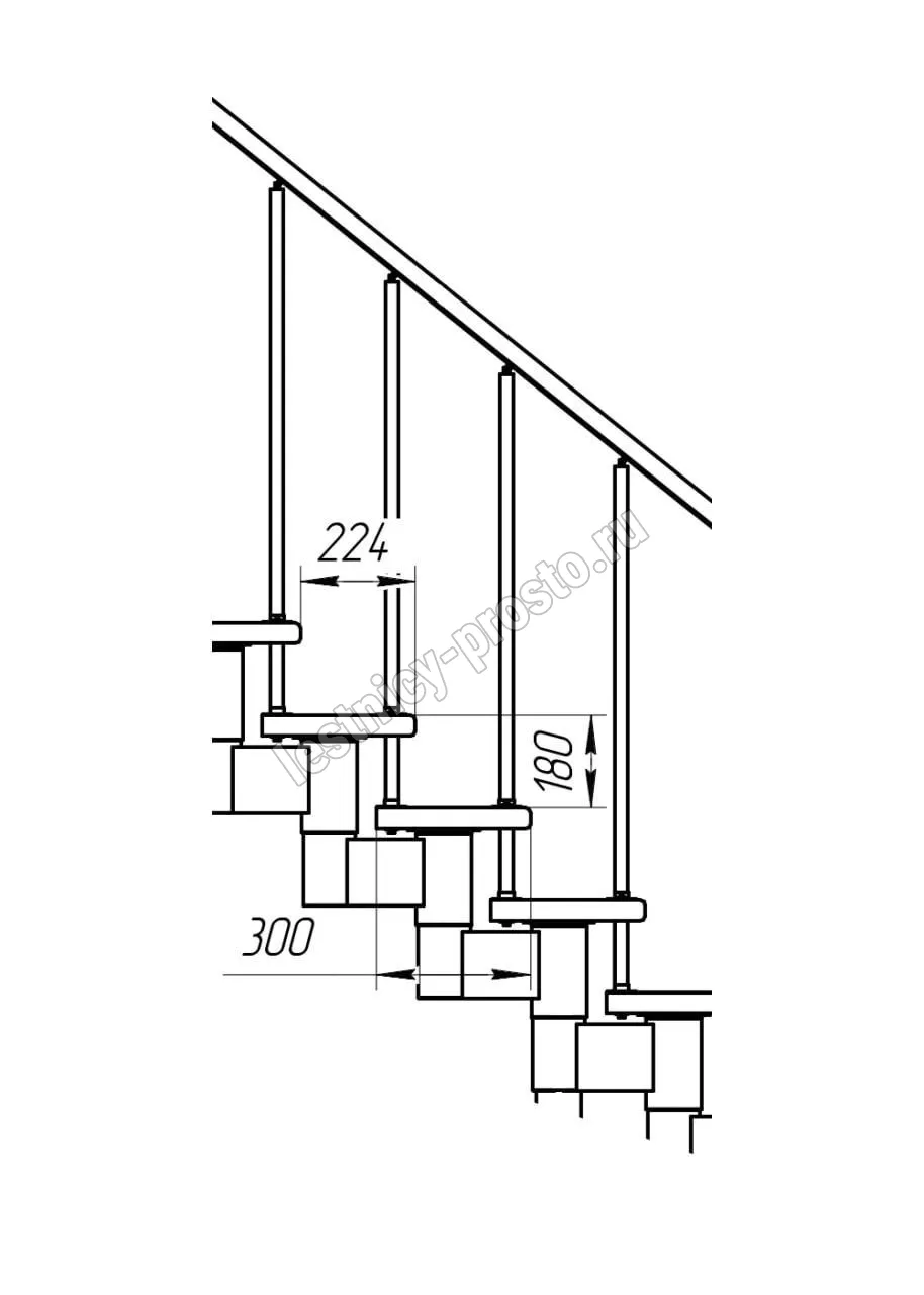 Модульная лестница Фаворит 180 3060-3230, Белый, Лиственница, Нержавеющая сталь