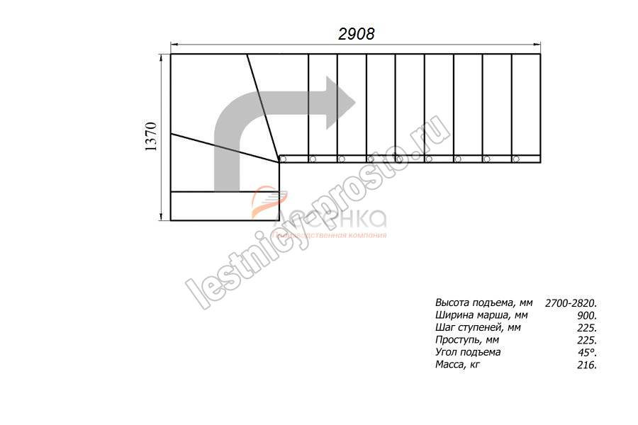 Модульная лестница Фаворит 225 2700-2820, Белый, Сосна, Крашеная, Без Ступений