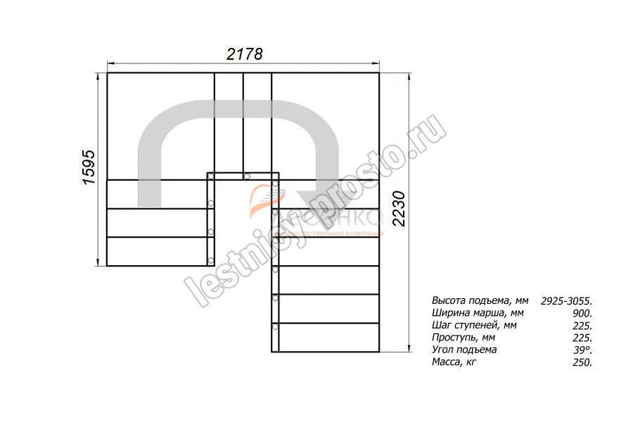 Модульная лестница Комфорт 225 2925-3055, Белый, Сосна, Крашеная, Без Ступений