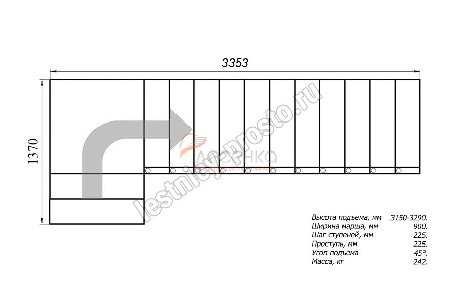 Модульная лестница Статус 225 3150-3290, Белый, Лиственница, Крашеная