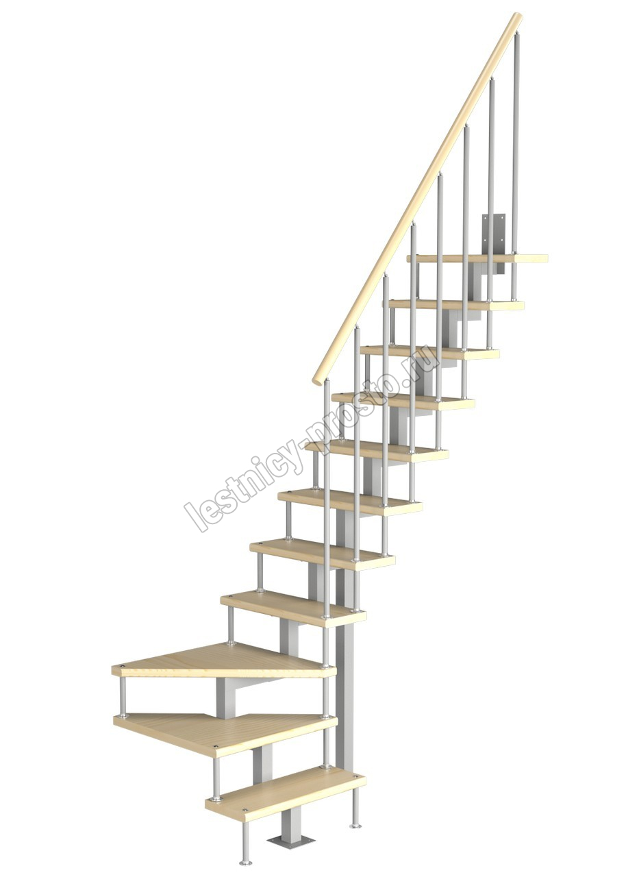 Модульная малогабаритная лестница Компакт 2475-2700, Белый, Бук, Нержавеющая сталь