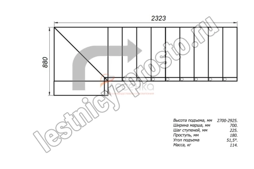 Высота лестницы 2700 - 2925 мм