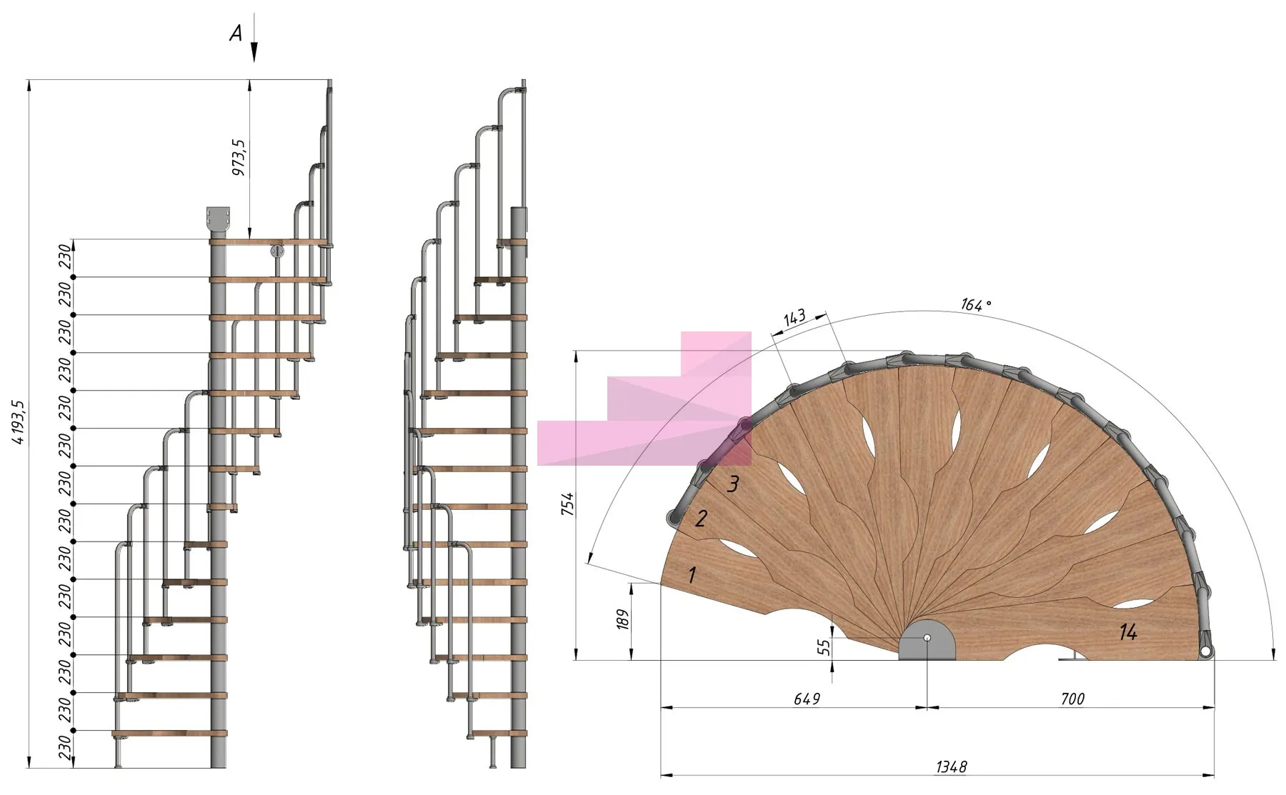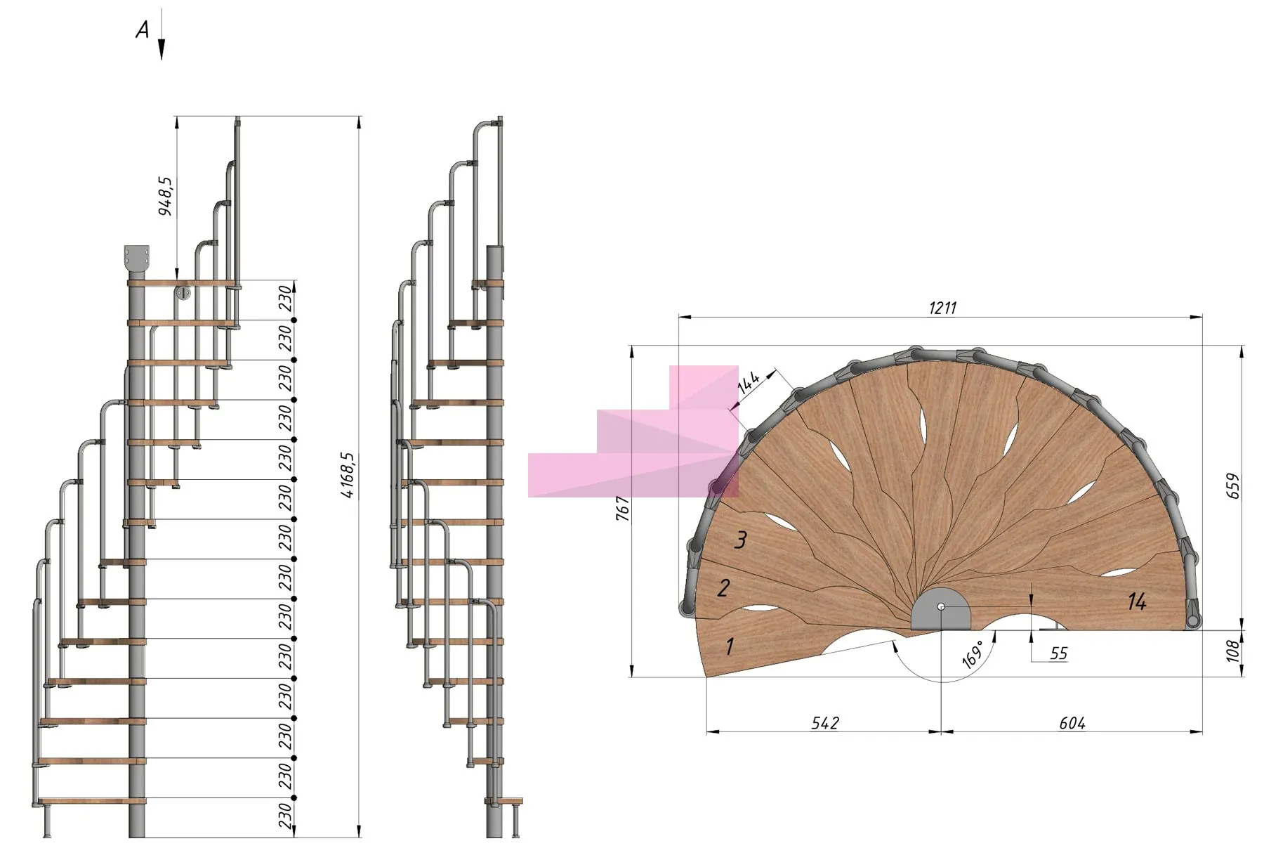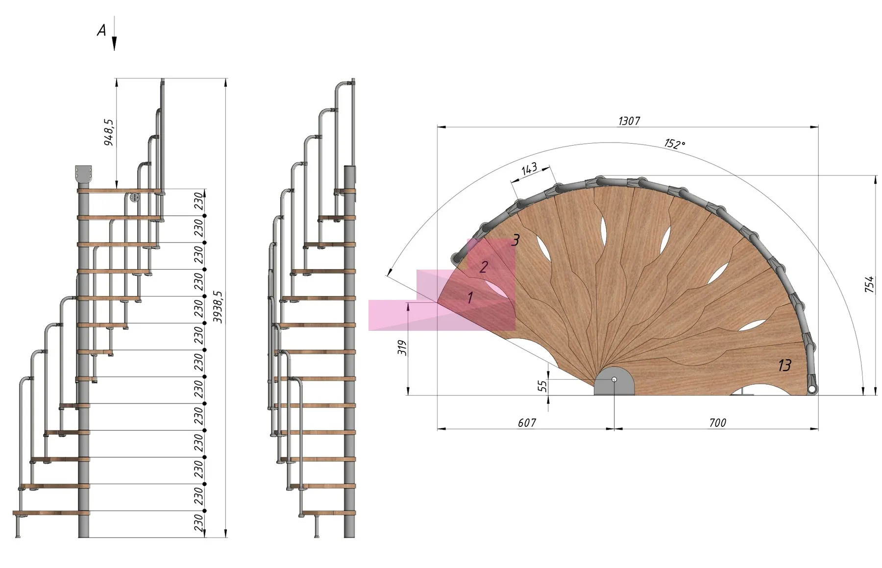 Ступени, элементы каркаса, ограждение, необходимая фурнитура и крепёж.