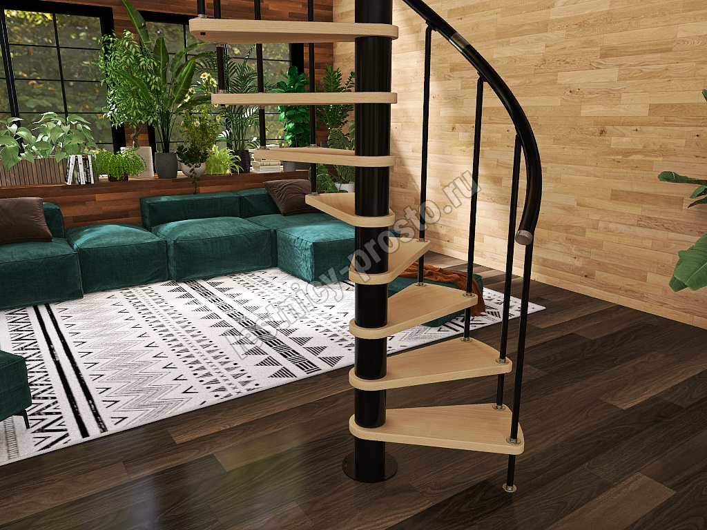 Винтовая лестница Prosto Spiral Black D120см, h303.9-348,1 см, бук
