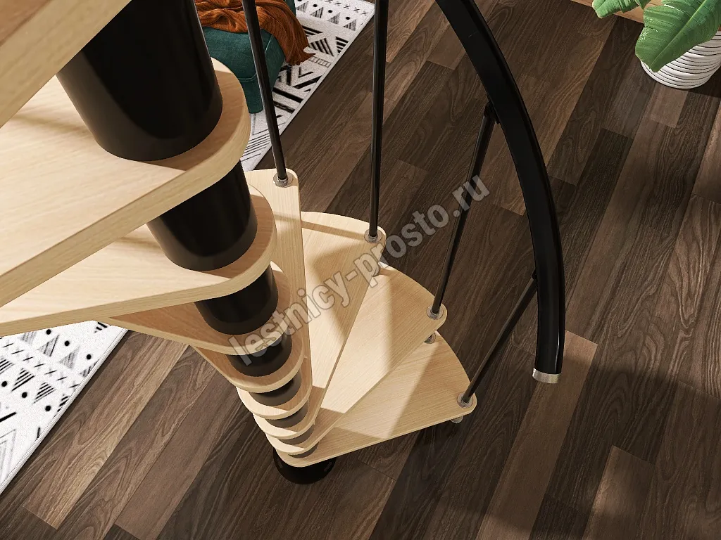 Экономит пространство. Высота ступеней регулируется с шагом 3 мм. в пределах 217-247 мм., благодаря чему, лестница прекрасно подгоняется под необходимую высоту.