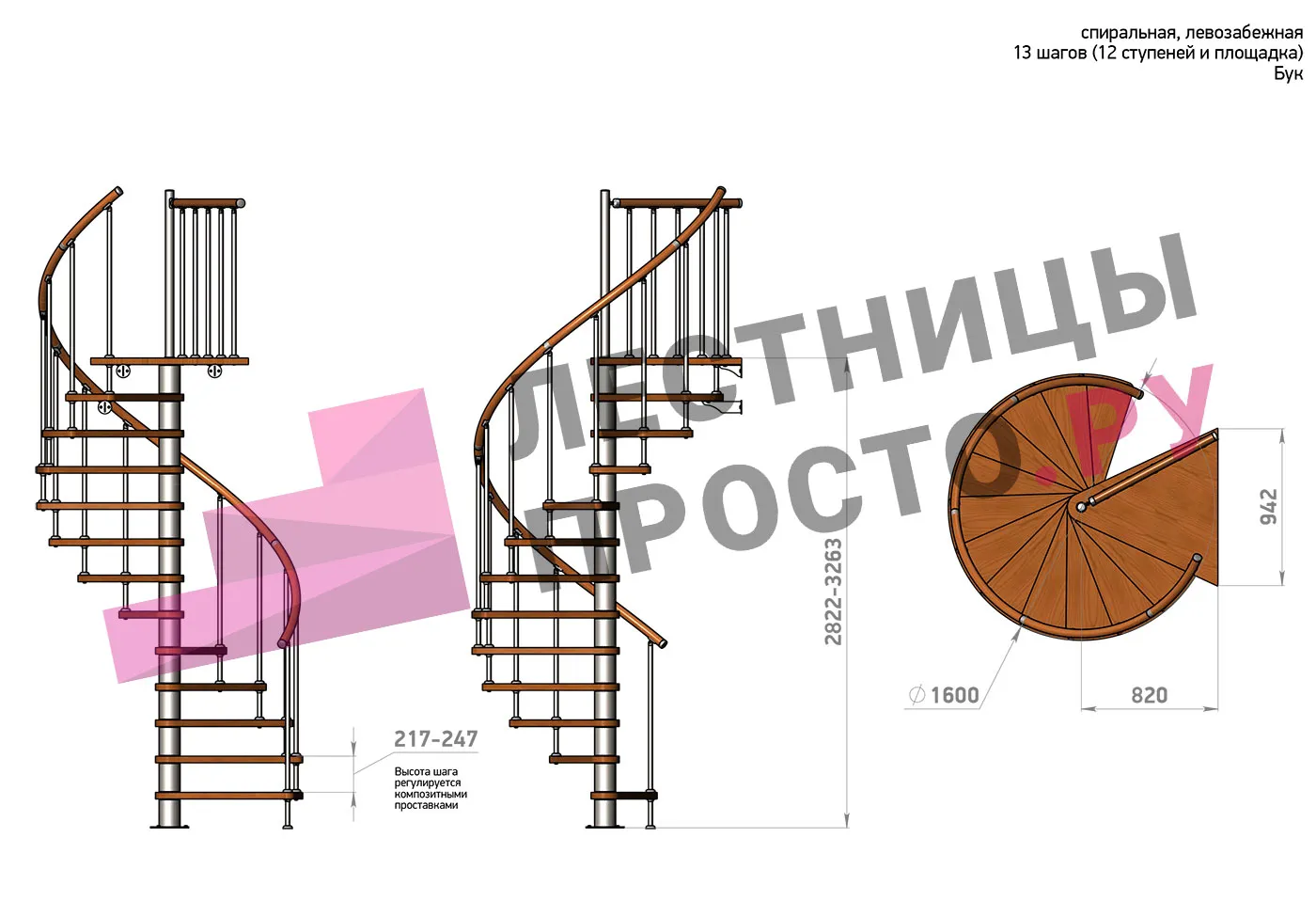 Ширина ступени между центральной колонной и поручнем ≈ 680 мм