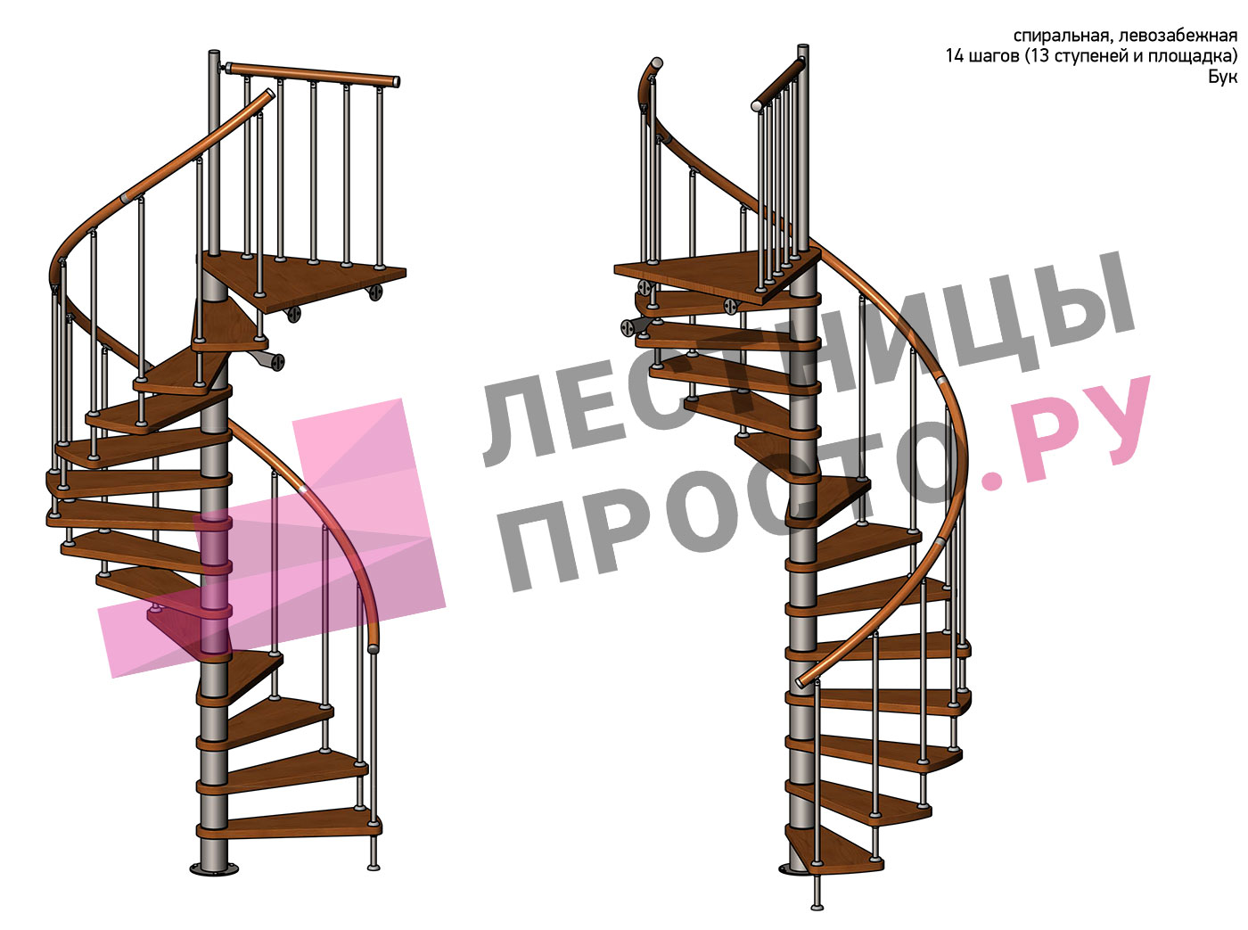 Левая, d=160см, 13 ступеней + площадка