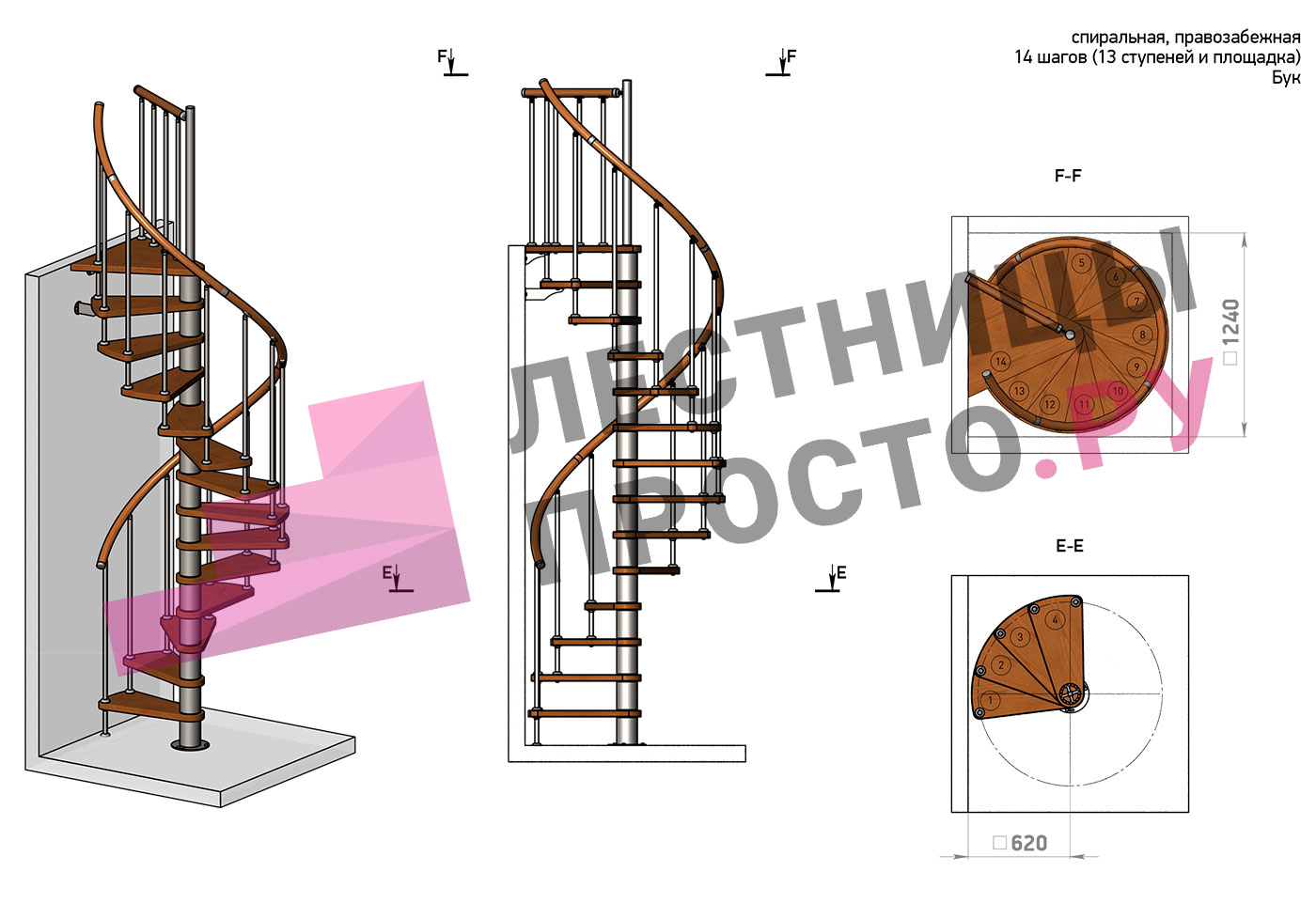 Решение о направлении поворота принимается при сборке лестницы - универсальная конструкция позволяет собрать правозабежную и левозабежную лестницы.