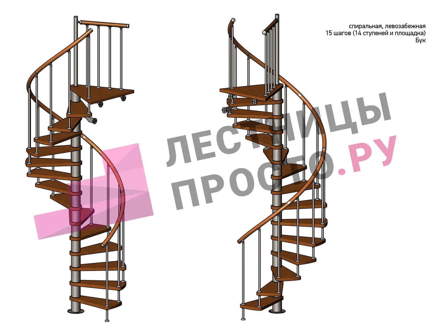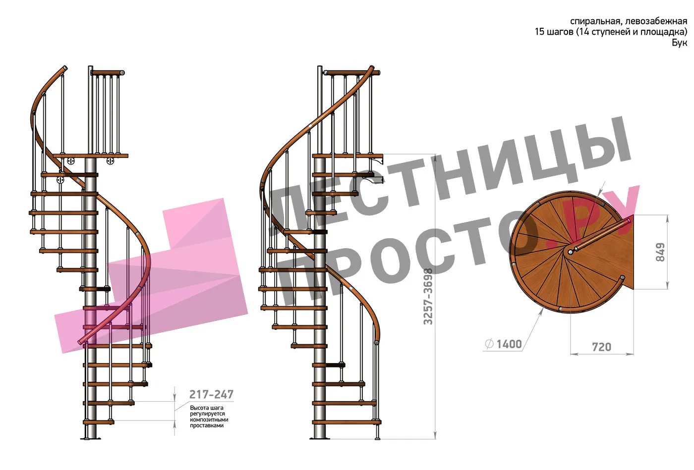 Винтовая лестница Prosto Spiral White D140см, h325.7-369.8 см, бук