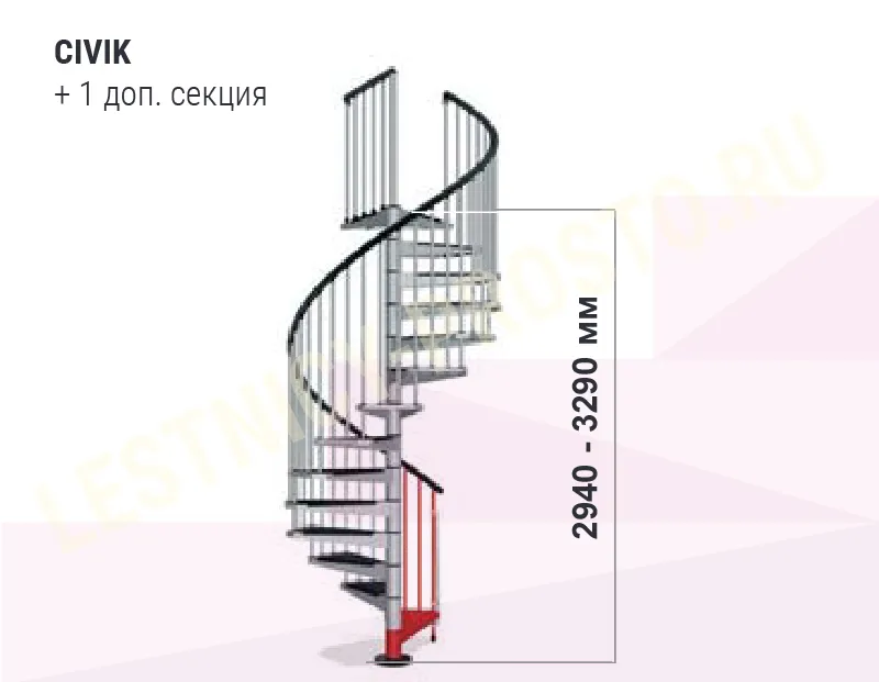 Ступени лестницы покрыты специальными накладками из износостойкого антискользящего материала. Площадка лестницы имеет универсальную форму, позволяющую встраивать лестницу в потолочные отверстия любой формы и размера. Высота лестницы (регулируется при установке): 2520 - 3050 мм. С помощью специальных дополнительных секций, высоту лестницы можно увеличить до 3760 мм. (Секции покупаются отдельно). Во время сборки, задаётся необходимое направление поворота лестницы. Материал каркаса: прессованная пластифицированная сталь