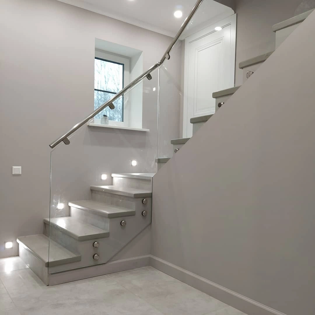 Балюстрада состоит из округлых балясин, трубок из нержавеющей стали и цельного гибкого ПВХ поручня диаметром 40 мм.