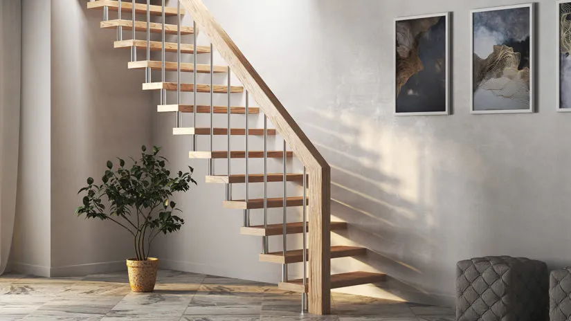 Лестница на больцах модель, ступени которой фиксируется к стенам с помощью больцев. У лестницы на больцах отсутствуют подступенки и каркас.