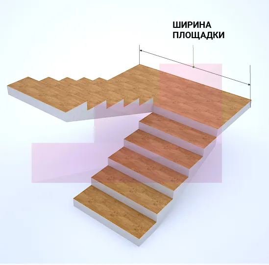 Ширина лестничной площадки расстояние, которое измеряется в плане между передней кромкой фризовой ступени и элементами, ограничивающими лестничную площадку.